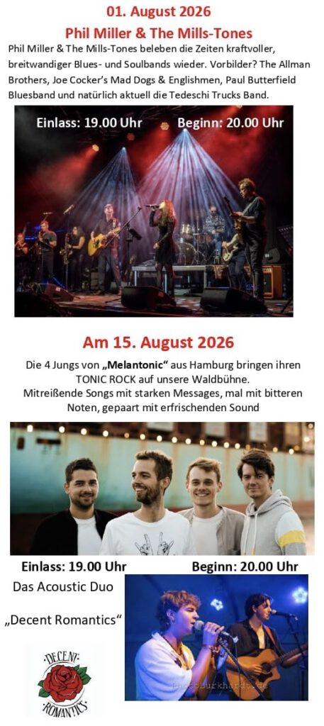 Sie ist gut zu Fuß zu erreichen und bietet 300-400 Zuschauern Platz.Besuchen Sie uns doch einmal bei einer Veranstaltung oder nehmen Sie sich Zeit zu einem Spaziergang zur Freilichtbühne.